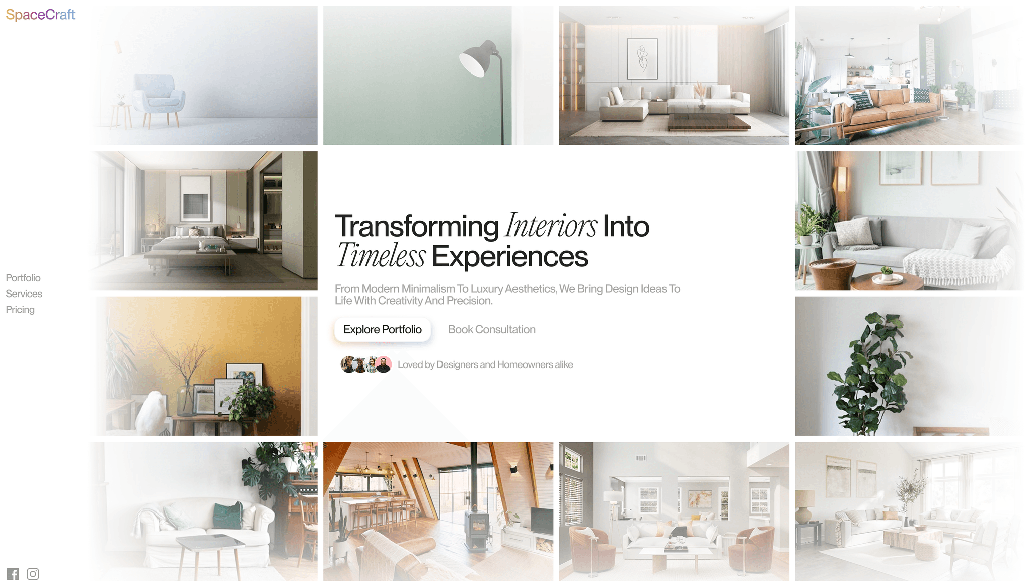 A center-aligned text hidden behind four dynamic image cards that disperse on hover.